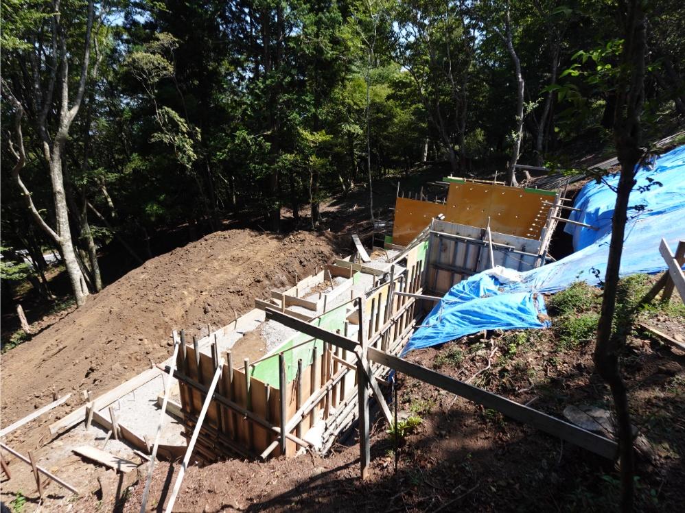 ここに家が建つのだろうと思われる場所は、大きく山が削り取られ段差を付けた形で木の板で仕切られていました。