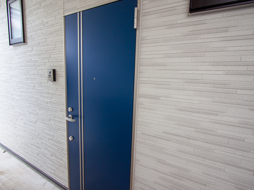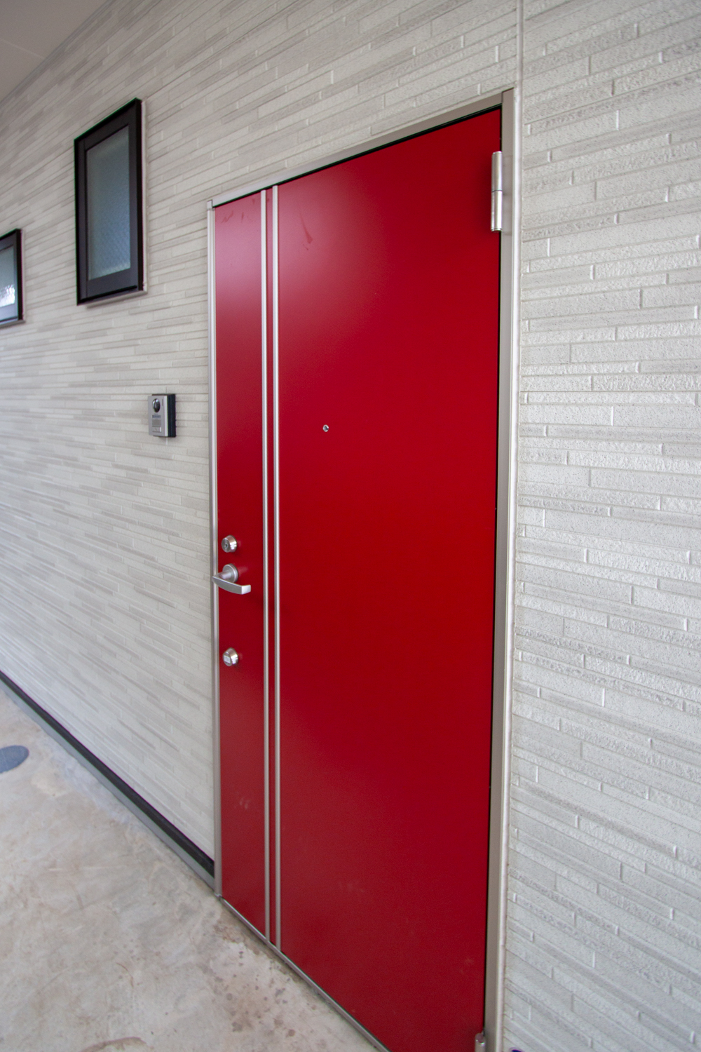 賃貸住宅のドアは住戸ごとに青や赤と色が異なり、そこにも個性が感じられます。