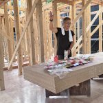 自分で設計した図面を、現場監督として建築まで携わり、自分の手足と五感で確かめるのが山田社長流。