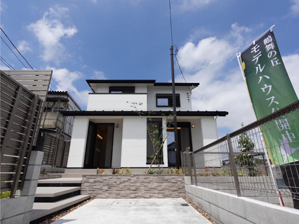 山田社長が指さしたのは、白と黒を基調とした落ち着いた外観のモデルハウス。