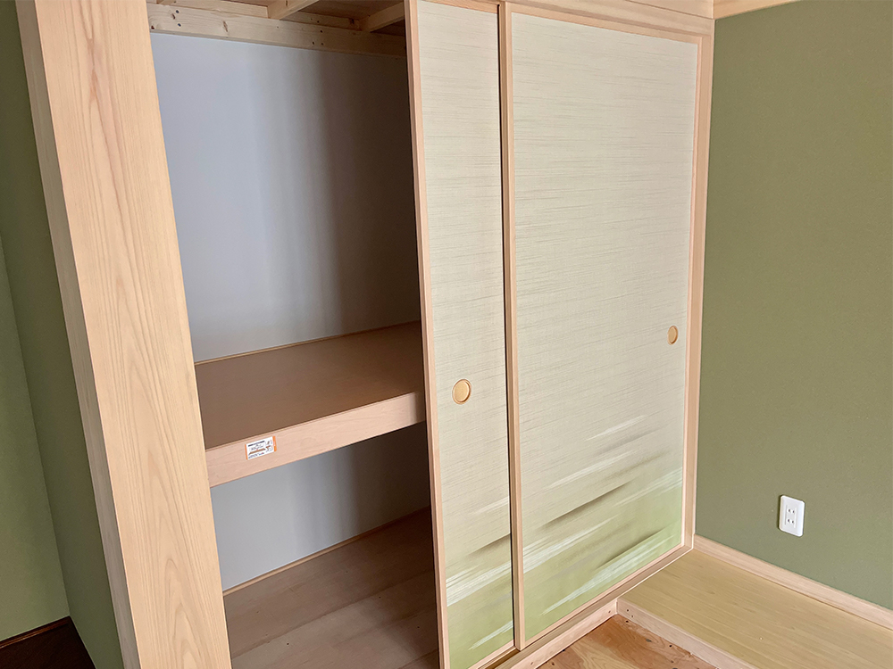 それらに合わせた、深い緑色の壁やふすまは、まるで元からそこにしつらえてあったかのように自然なたたずまいです。