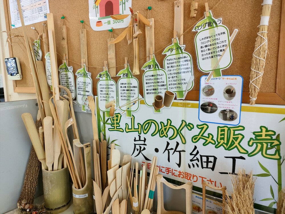 さらに、レストハウス内には、都筑里山倶楽部のボランティアによる竹細工や手作りグッズの販売コーナーがあります。